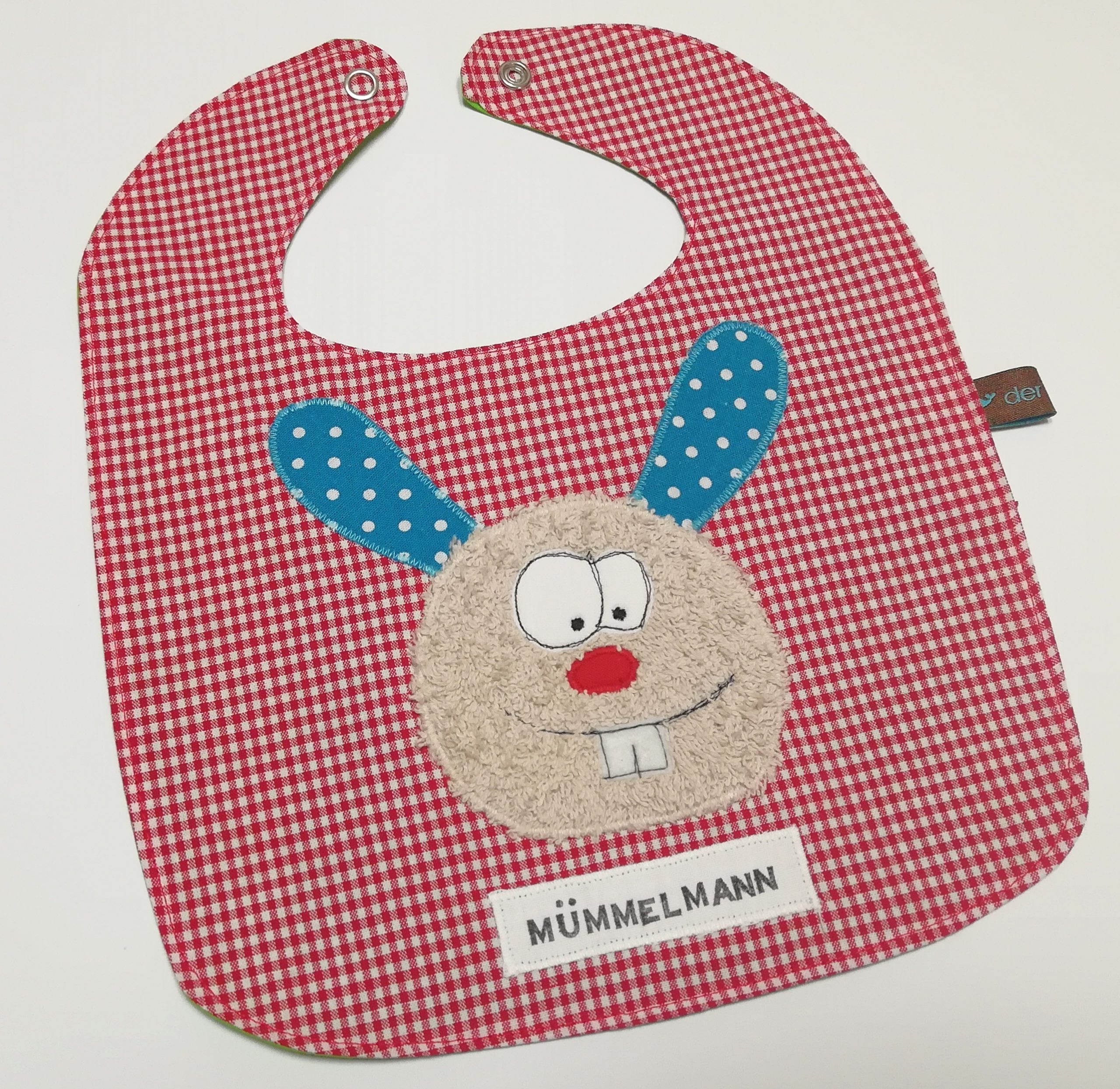 Das Lätzchen wird mit einem Druckknopf geschlossen.